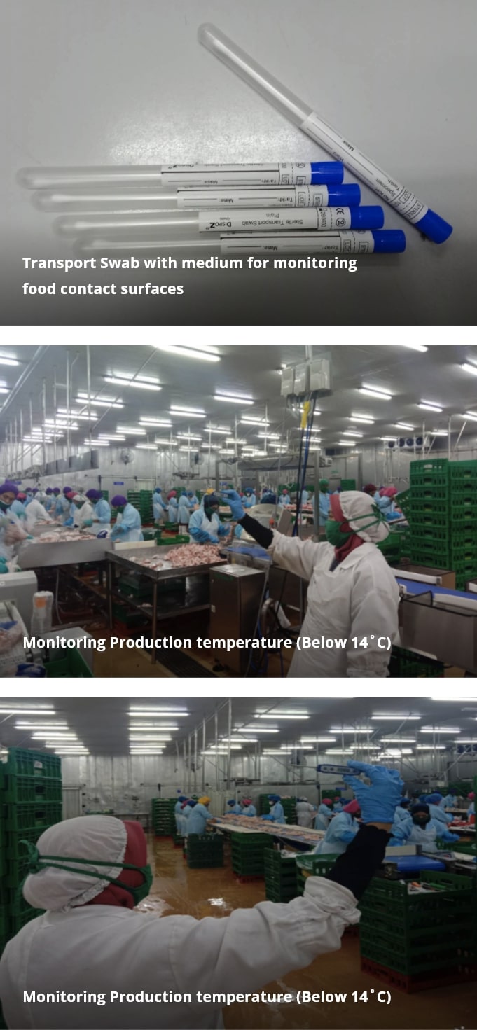 All finished products will be packed, kept and stored under their respective temperature requirement such as chiller room for chilled products (0˚-4˚C) or frozen products will be sent for a blast-freezing process to achieve core temperature of below -18˚C and subsequently be stored in a -18˚C warehouse.