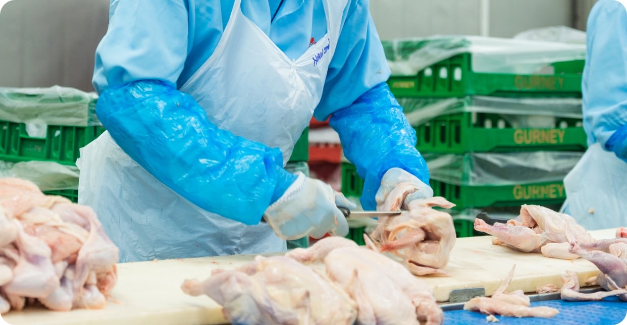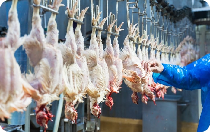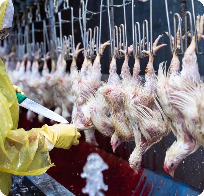 This process entails the cutting and deboning of whole chicken into different parts, such as bone-In products (thigh, rib, keel, wing, drumstick, drumette, mid wing), boneless & skinless products (breast meat, leg meat, chicken chop) and portion control as per customers’ requirements.