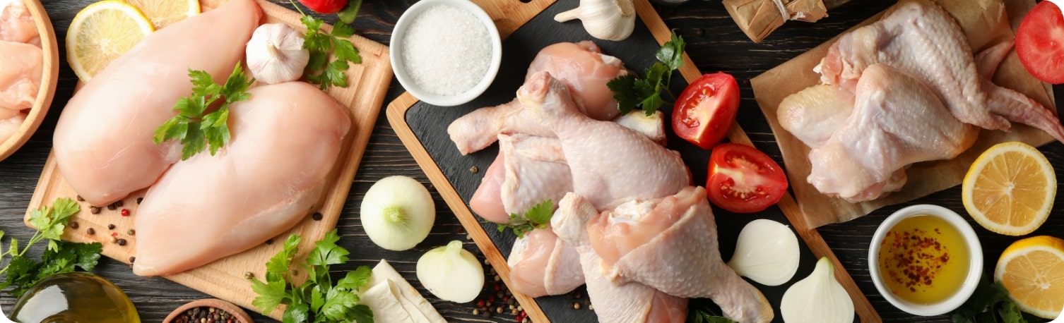 Produk ayam mentah yang berkualiti tinggi dihantar terus kepada pelanggan dari kilang yang bertaraf antarabangsa.