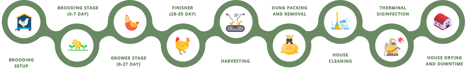 As one of the best partners for poultry farmers, we ensure that the feed produced uses a specialised formula to meet the nutritional needs of each stage in the broiler rearing process.