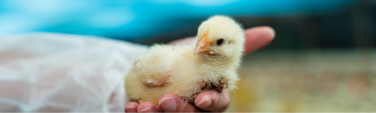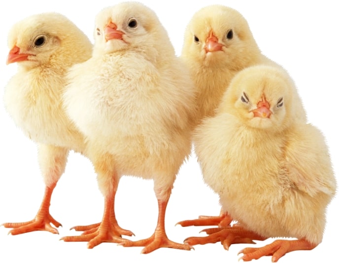 DOCs are 0-day-old and these chicks are sent by truck from the hatchery to the farm with a standard weight of 38 grams to 45 grams.
